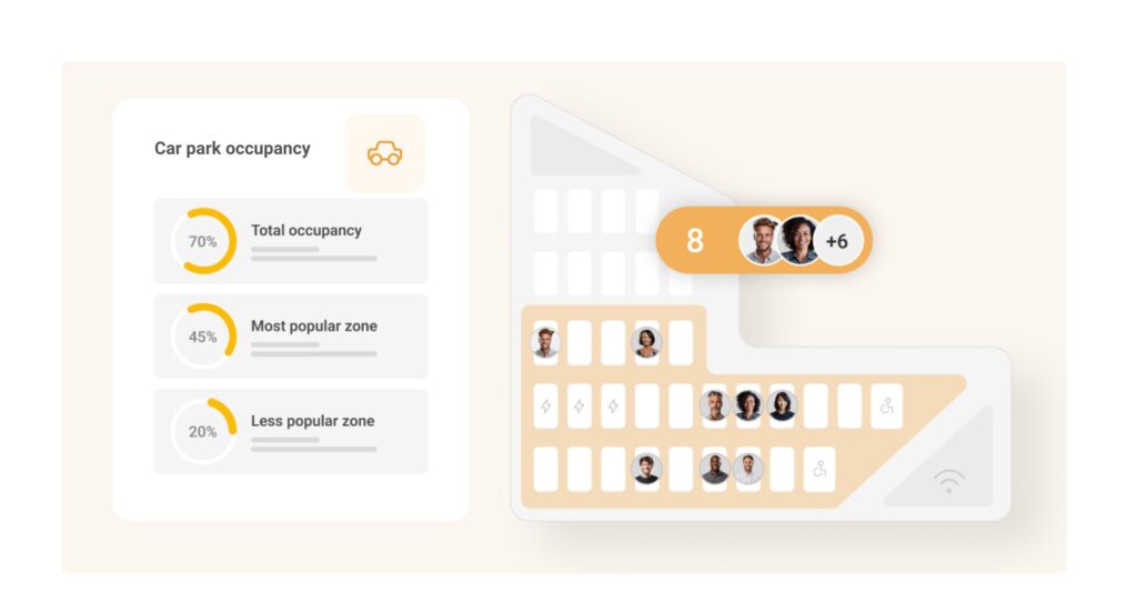 A workplace car park booking system is a group of tools that makes reserving spaces in your office car park simple and effective. These solutions allow employees to see what spaces are available, book a parking spot before they leave for work, and improve the usage of your car park through a desktop or mobile app – our data shows Ronspot reduces empty spaces by up to 60%.
